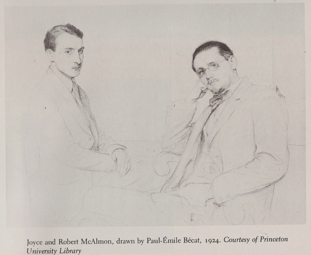 Robert McAlmon and James Joyce, drawn by Paul-Émile Becat, 1924